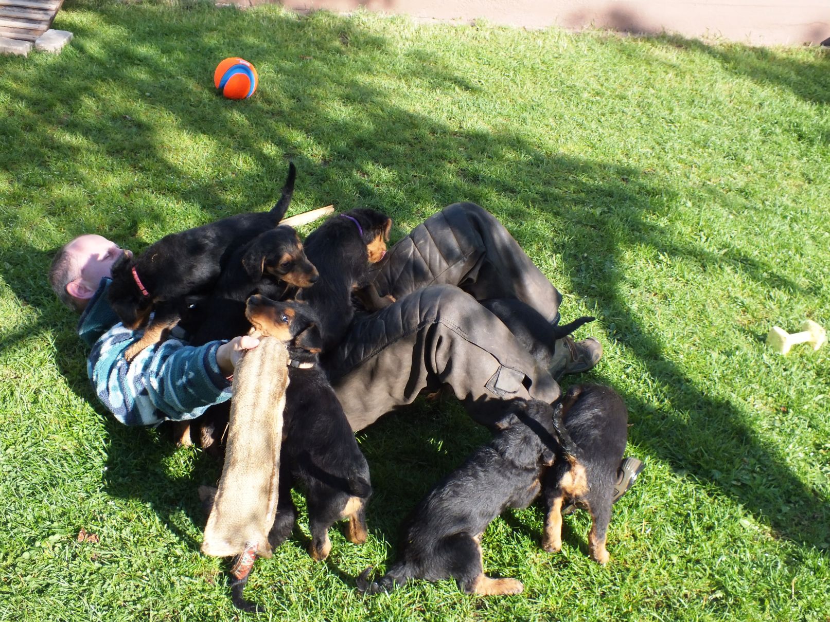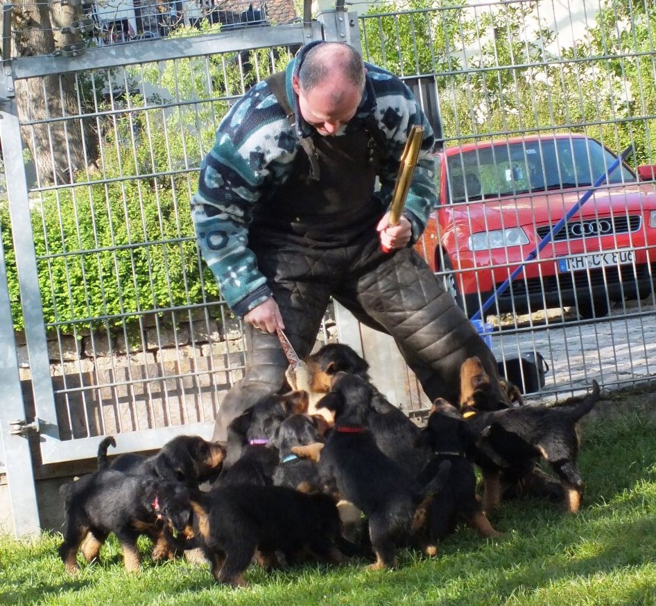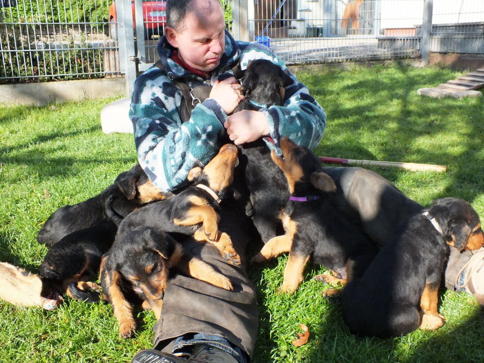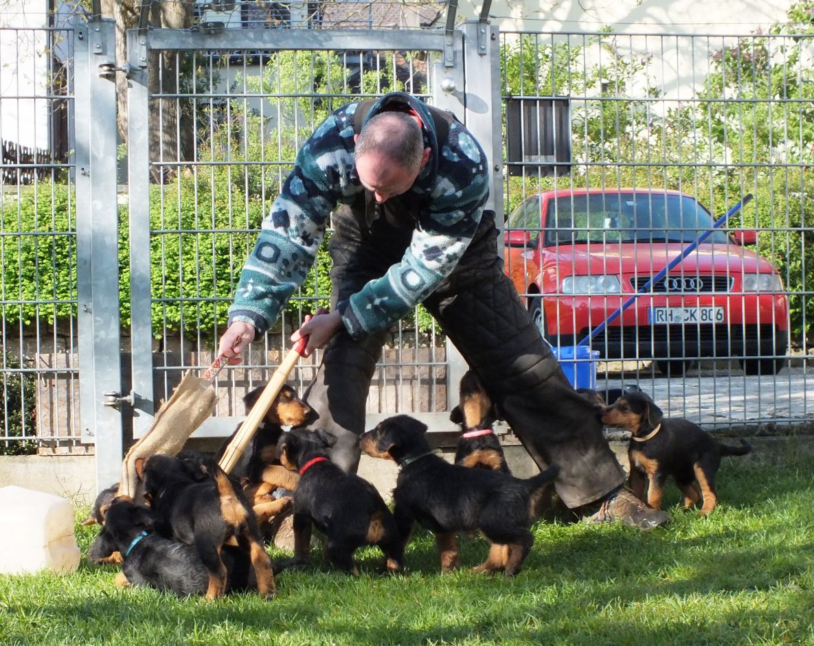 Und diese Woche haben die Kleinen ihren ersten Ausflug in den großen Garten und Schutzdienst gemacht. Der Helfer hatte nicht den hauch einer Chance!